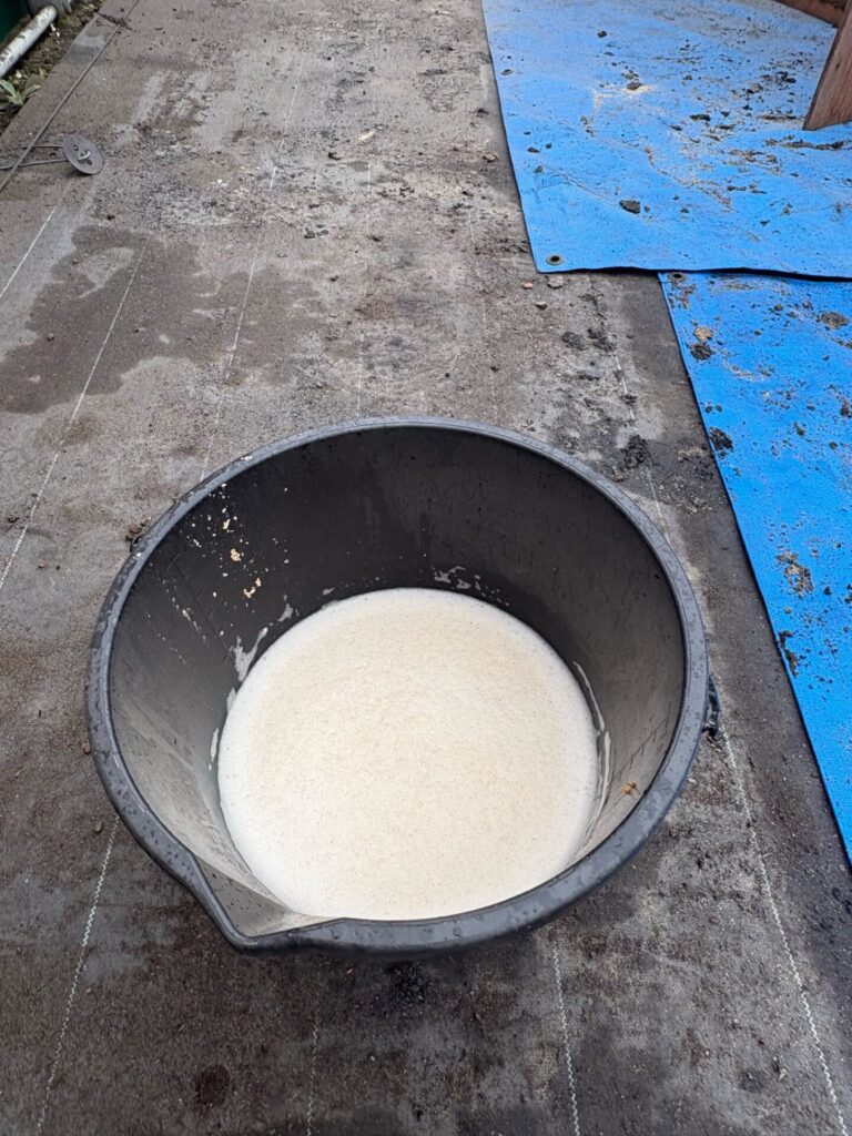 そして午後からは、2年に一度の重要ミッション、ぼかし肥料作りを行いました。